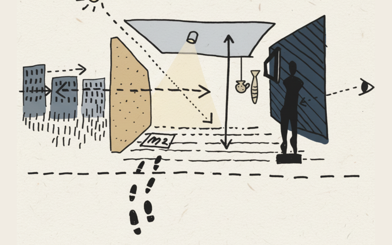 Étude scénographique et conception dʼespaces (croquis, 3D, moodboard)