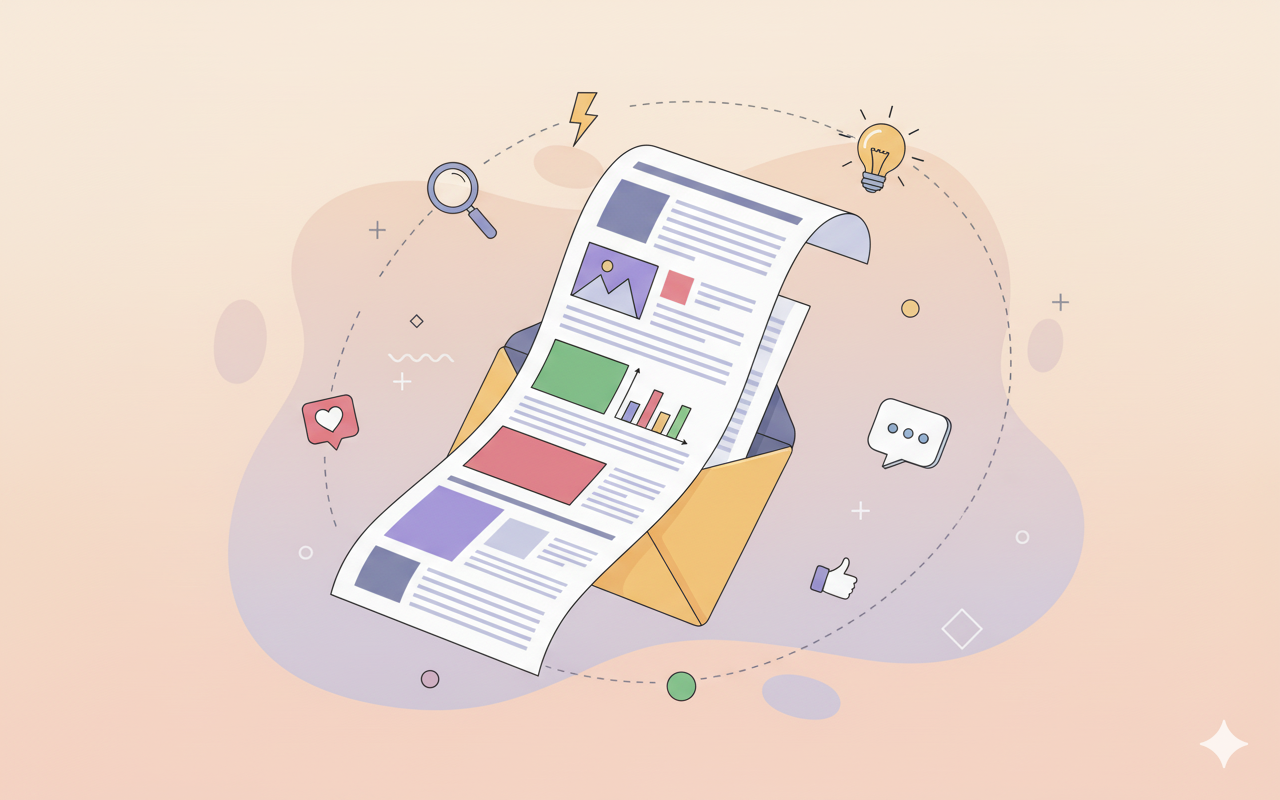 Conception, design et segmentation de newsletters engageantes, avec une cohérence éditoriale et visuelle.